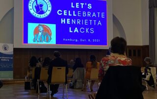 Am 8. Oktober 2021 besuchte die Lacks Familie Hamburg um über das medizinische Vermächtnis von Henrietta Lacks zu berichten. In einem exklusiven Gespräch in der Handwerkskammer in Hamburg, standen die beiden Urenkelinnen von Henrietta Lacks, Veronica Robinson und Victoria Baptiste, der Moderatorin Ericka Bahner-Seifried Frage und Antwort. Auch die zahlreichen Gäste nutzen die Gelegenheit und stellten ihre Fragen an die Lacks Familie. Zum krönenden Abschluss der Veranstaltung, forderte Ericka die Gäste auf „Say her name!“ und die Gäste antworteten im Chor „HENRIETTA LACKS“. Die Stimmen der Hamburger Gäste schallte durch den prunkvollen Veranstaltungssaal der Handwerkskammer. Nun kennt Hamburg endlich die Geschichte der HeLa Zellen und noch viel wichtiger, den Namen und die Geschichte ihrer berühmten Namensgeberin Henrietta Lacks.